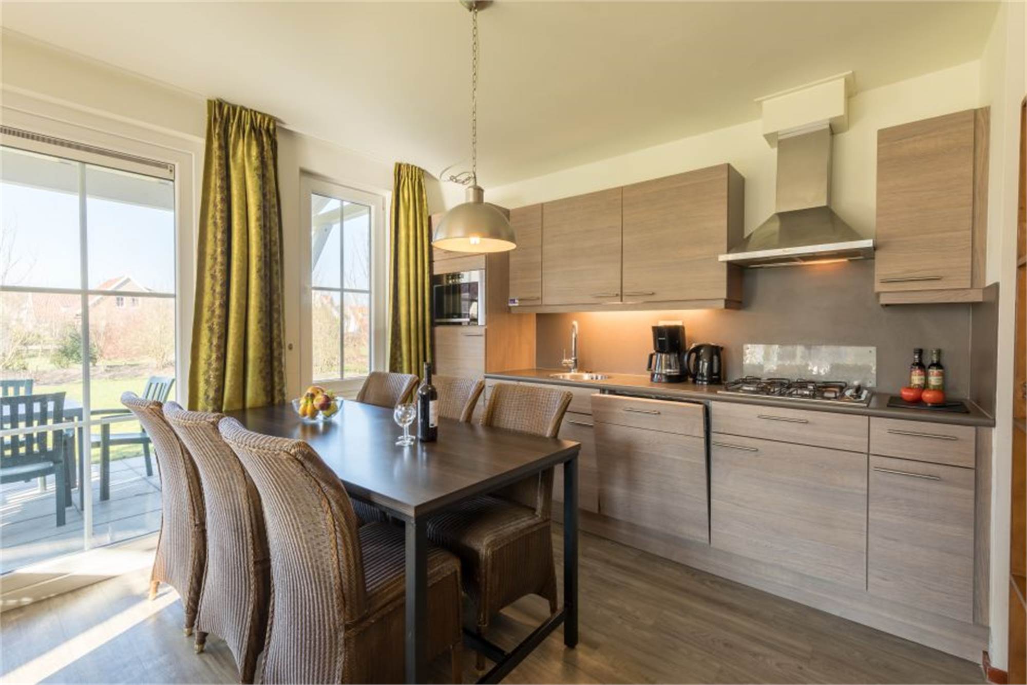 Diese freistehende luxuriöse Villa im Ferienpark Résidence Klein Vink eignet sich für 6 Erwachsene und 1 Baby/Kleinkind. Durch den Flur gelangen Sie in das helle Wohnzimmer mit Flügeltüren zur Terrasse. Die Küche ist mit hochwertigen Einbaugeräten, einschließlich Geschirrspüler, ausgestattet.