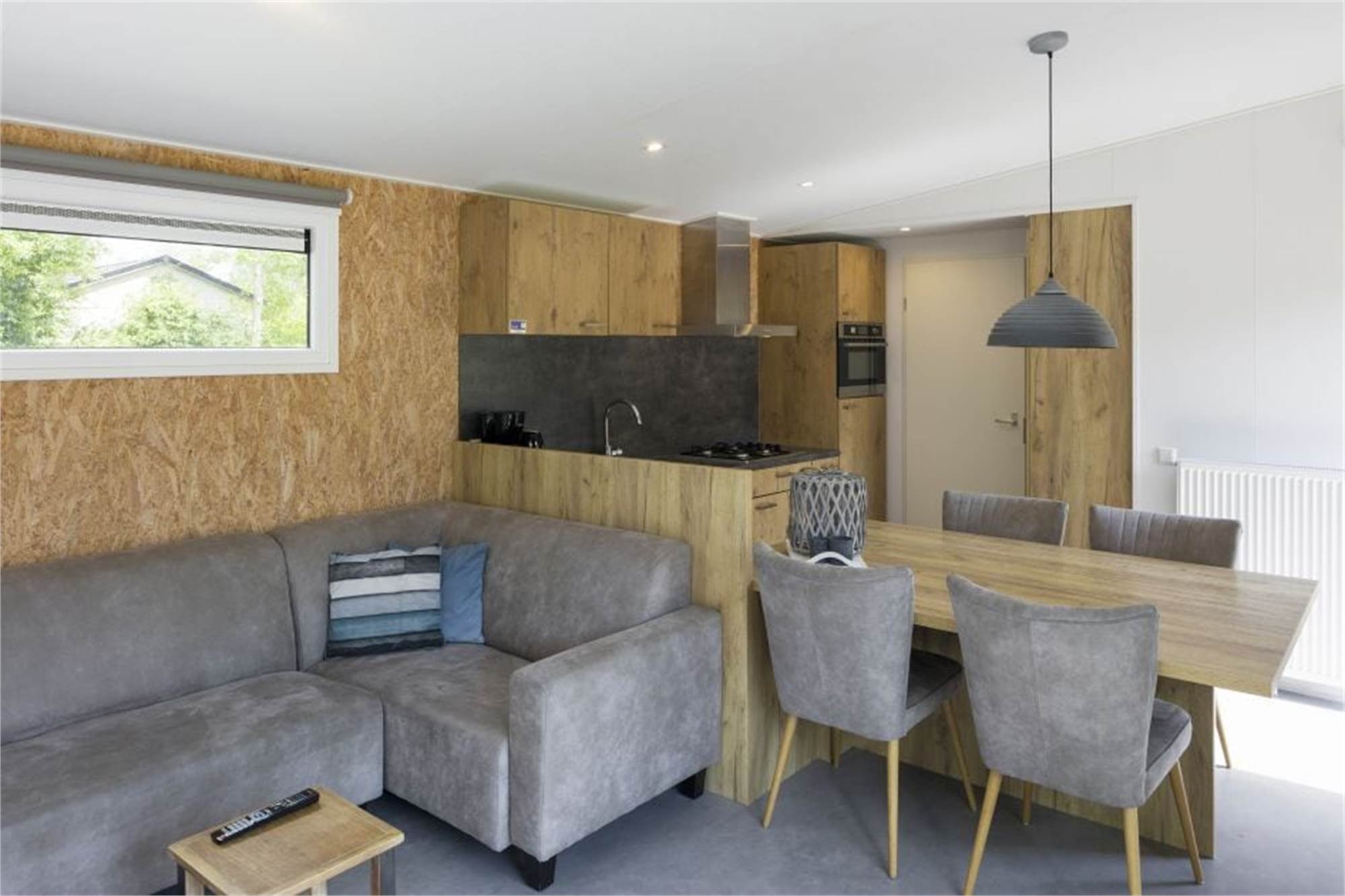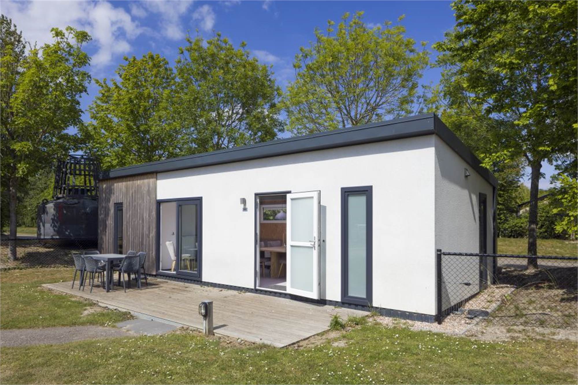 Dieses freistehende Chalet ist mit allem Komfort ausgestattet und eignet sich für 5 Personen und 1 Baby. Das Chalet bietet ein Wohnzimmer mit Sitzecke, eine Küche mit Kombi-Mikrowelle, Kühlschrank mit integriertem Gefrierfach, Geschirrspüler und Kaffeemaschine. Außerdem ist ein Kinderstuhl vorhanden. Es gibt drei Schlafzimmer mit insgesamt 4 Einzelbetten, 1 Hochbett, 1 Kinderbett, ein Badezimmer mit Dusche und eine separate Toilette. Die Unterkunft bietet eine möblierte Terrasse und Haustiere nicht gestattet. WiFi steht gratis zur Verfügung.