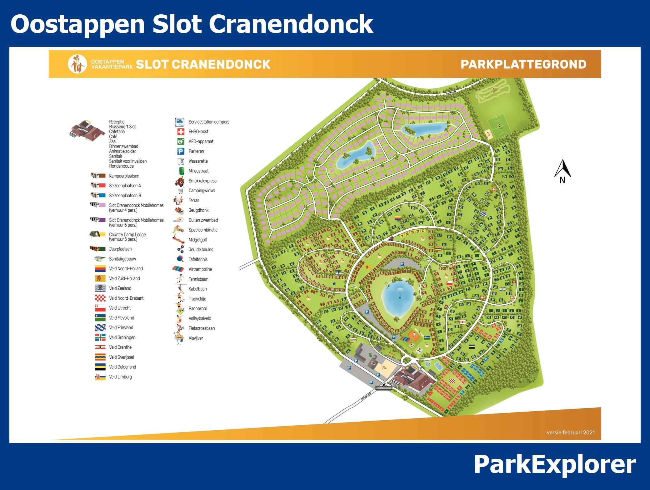 Aktueller und übersichtlicher Parkplan von Oostappen Slot Cranendonck mit alle Unterkünfte und Einrichtungen, auch als PDF herunterladbar.
